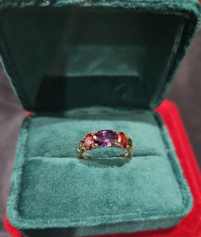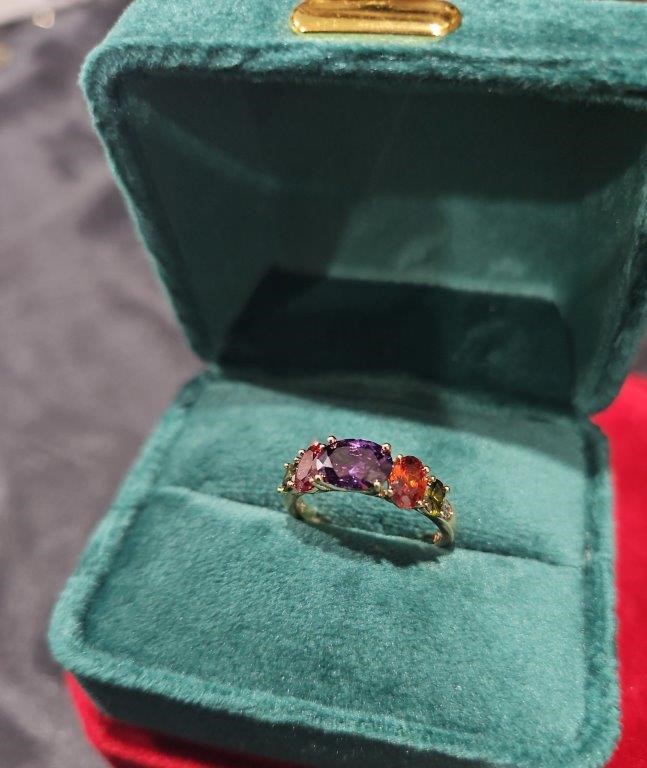 • Ring Size: 6US Main Stone Size: 3.5ctw Purple & Ruby & Green Oval Brilliant cut