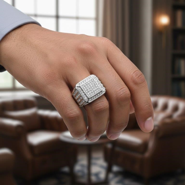 Italy 925 Silver Hip Hop Men`s Ring (Stamps)-12 US