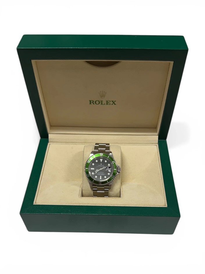 ROLEX SUBMARINER KERMIT 40MM STAINLESS STEEL 16610LV AUTOMATIC BLACK DIAL WXO & COA