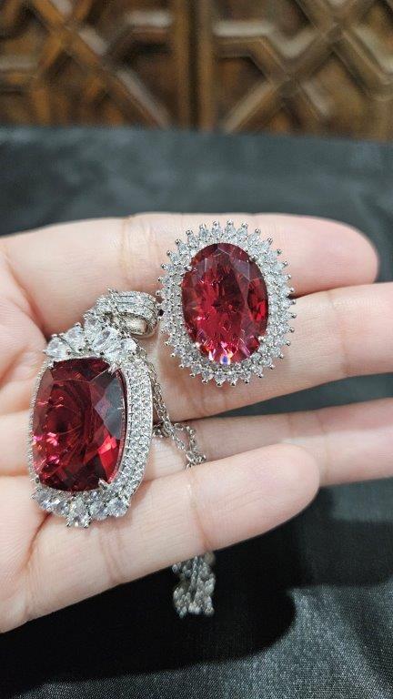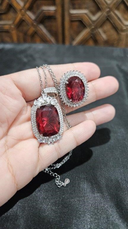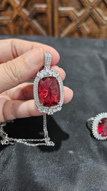20.0ct Ruby Simulated Diamonds Stones Pendant and Ring