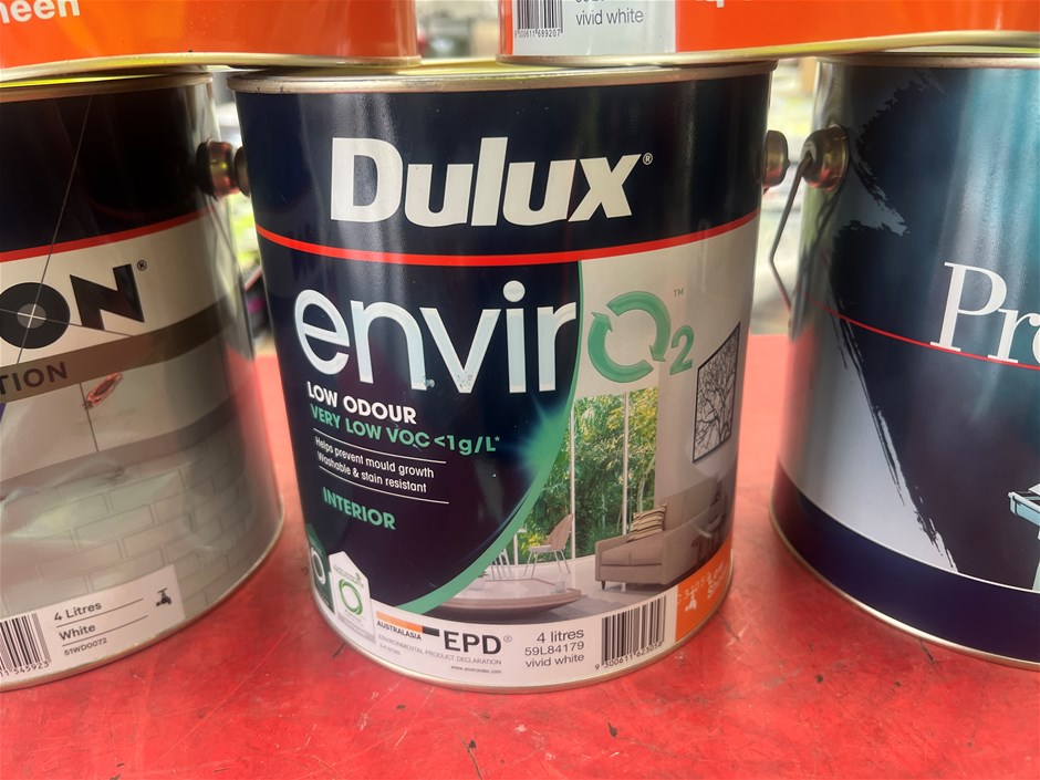 • 10 x 4 Litre Tins of Paint. Various Brands, Colours and Finishes.