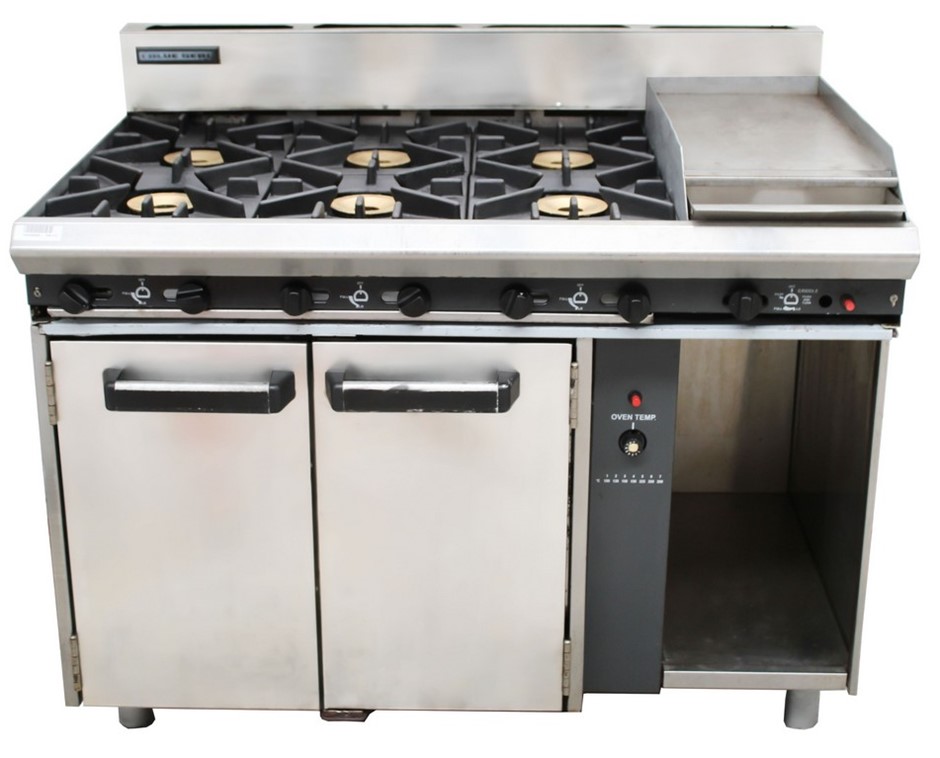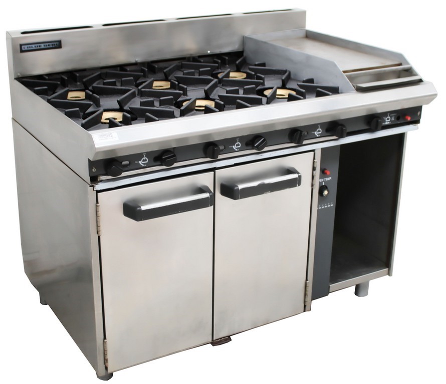 BLUE SEAL GAS COMBINATION 6 BURNER WITH 300MM HOTPLATE AND OVEN