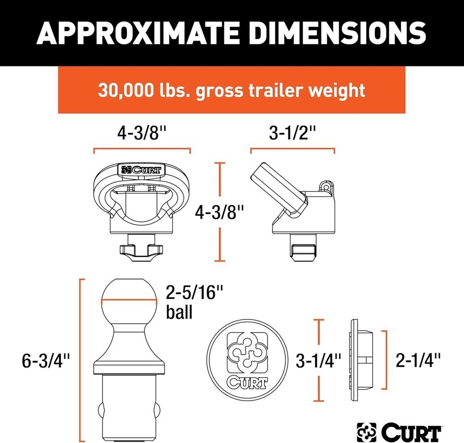 CURT 60618 OEM Puck System Gooseneck Ball & Safety Chain Anchor Kit for Ram. (Code: B00QXLI516) (334260-12)