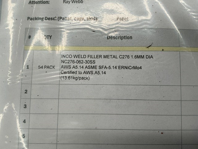 INCO-WELD 1.6mm C-276 Welding Wire Pallet of