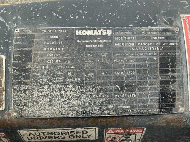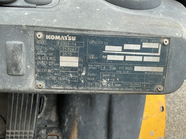 2010 Komatsu FG30T-17 Forklift - 3.2t - 4.0m - LPG
