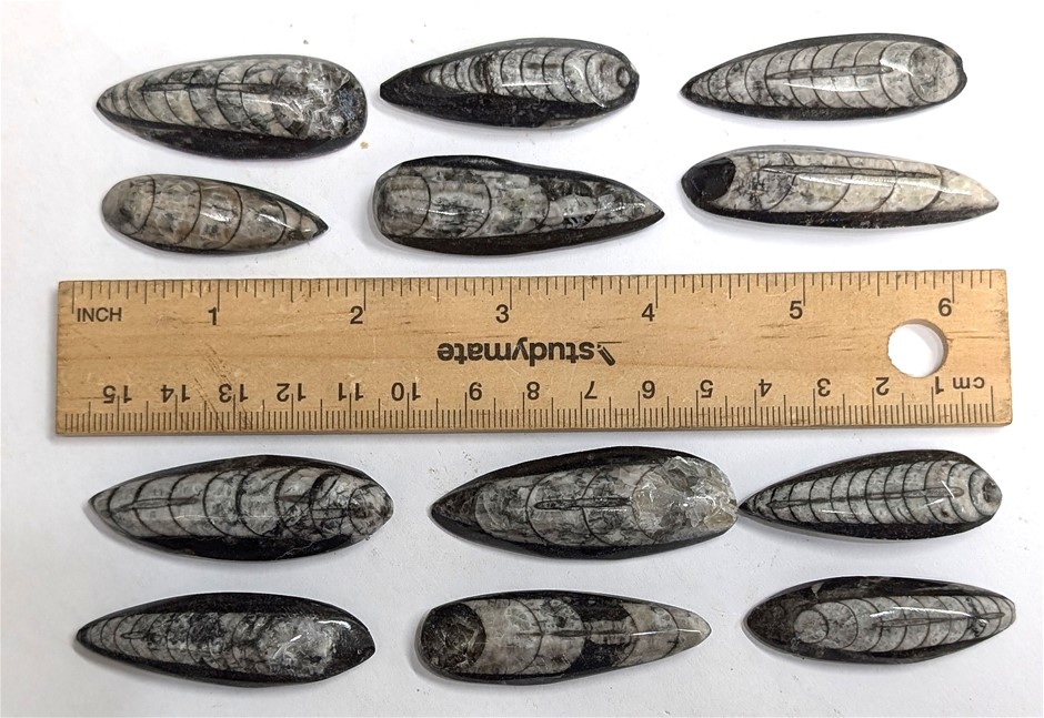 Dozen 380 Million year old ORTHOCERAS Fossils embedded in marble from Morocco (SN:213) (312487-13)