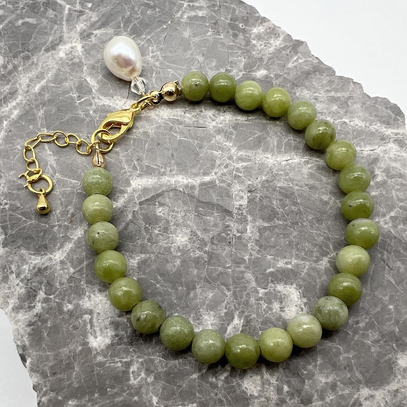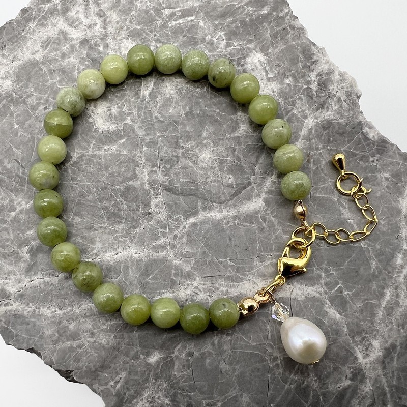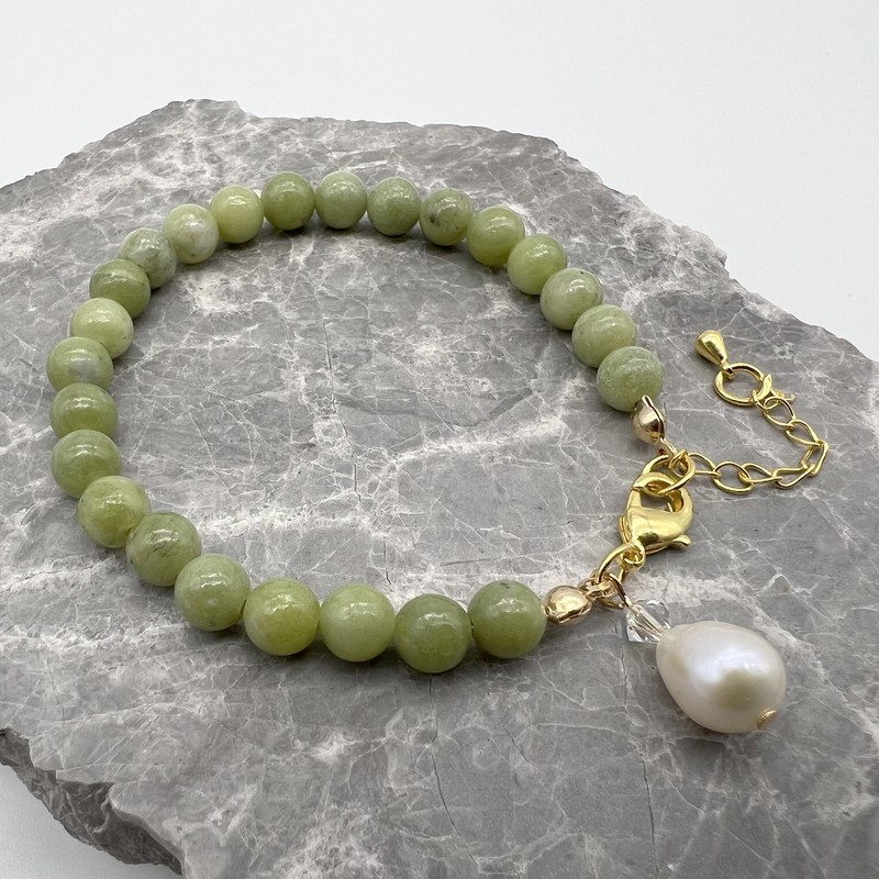 6mm Peridot & Baroque Pearl Pendant Charm Bracelet Embellished with Swarovski® Crystal.