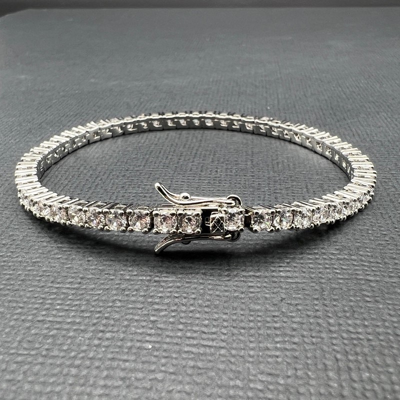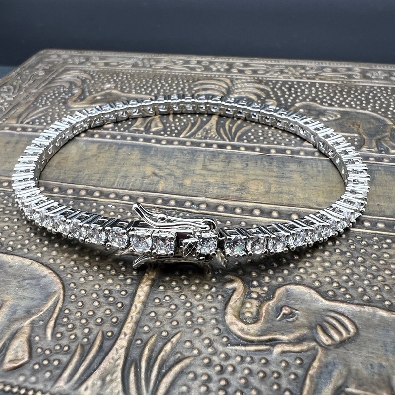 Opulent Galleria - Silver-Filled Tennis Bracelet with Round Facet Cut Simulated Diamonds – 17.8cm
