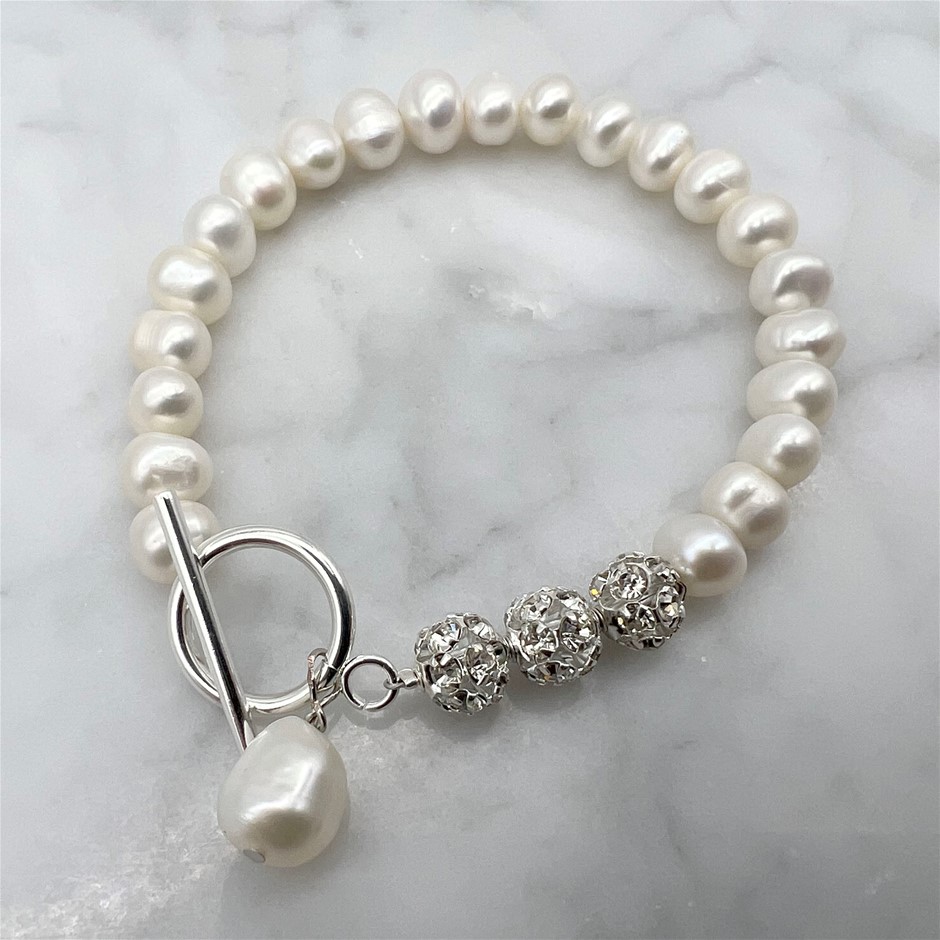 7-8mm Potato & Baroque Pearl with 'O' Toggle & Rhinestones Bracelet
