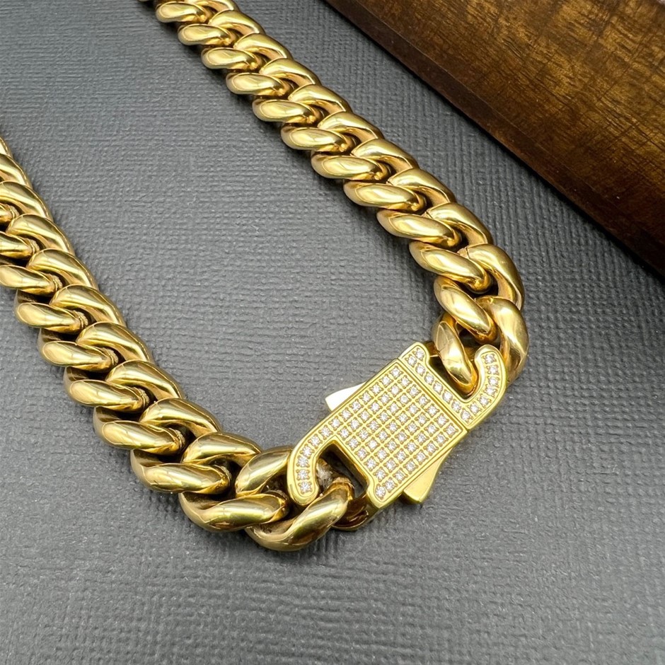 Opulent Galleria - Iced Clasp 18K Gold-Filled Cuban Chain Necklace, 12MM Wide - 60.9cm