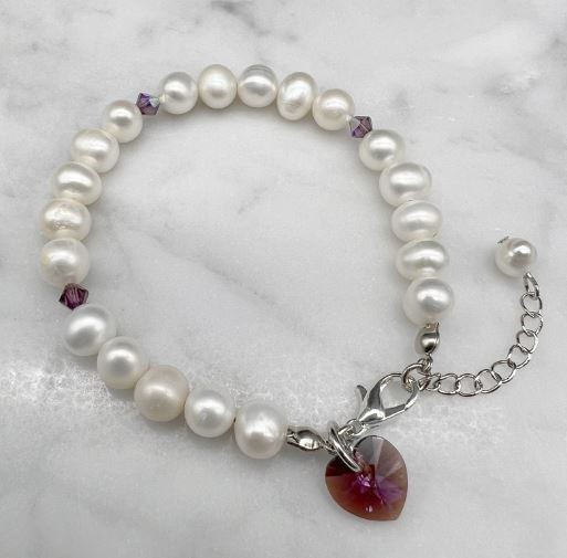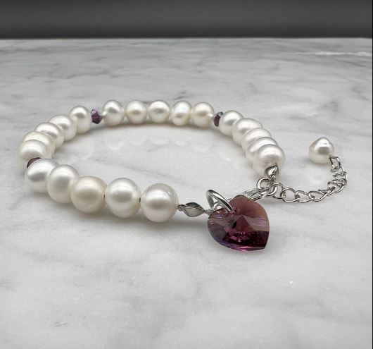 7-8mm Potato & Baroque Pearl Amethyst Shimmer Swarovski® Heart Bracelet