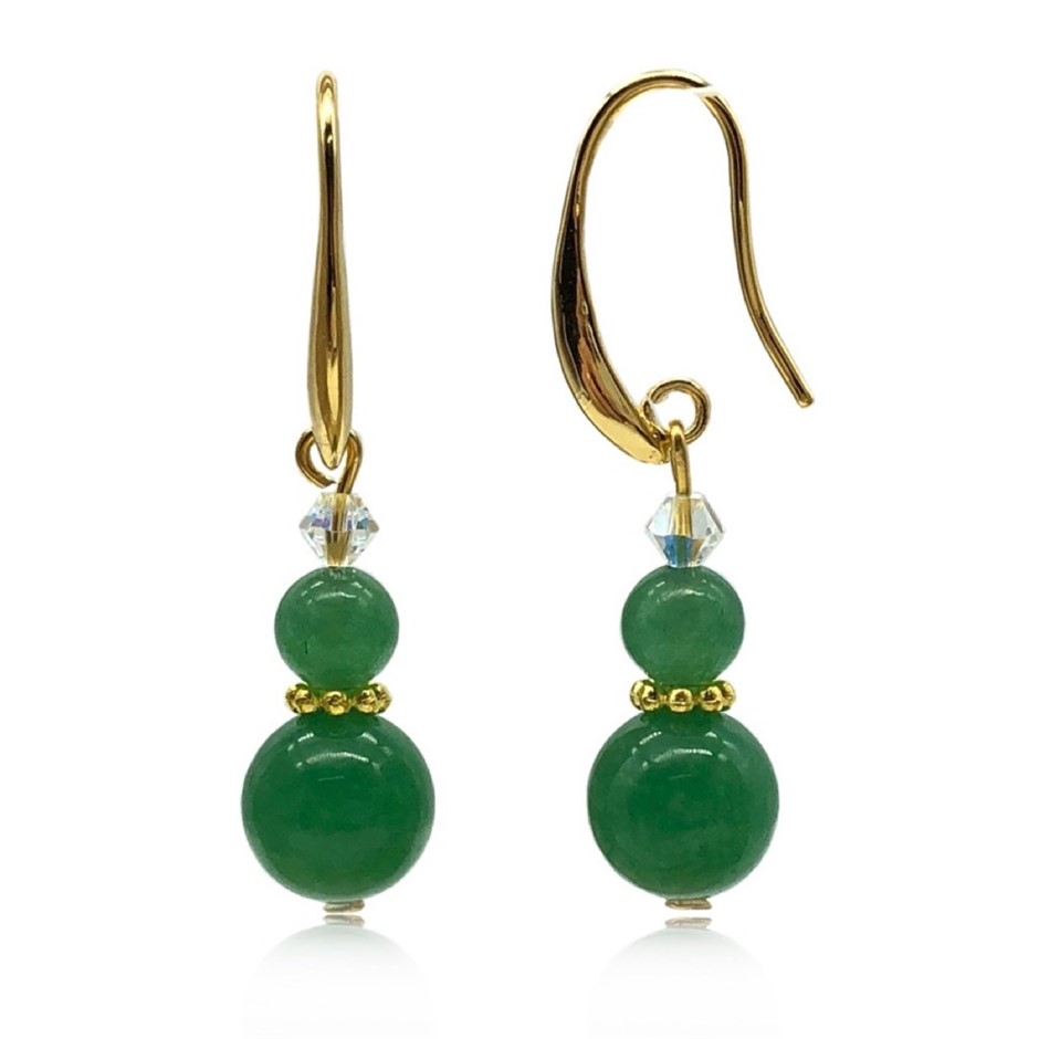 Green Aventurine Gemstones & Swarovski® Crystal Earrings