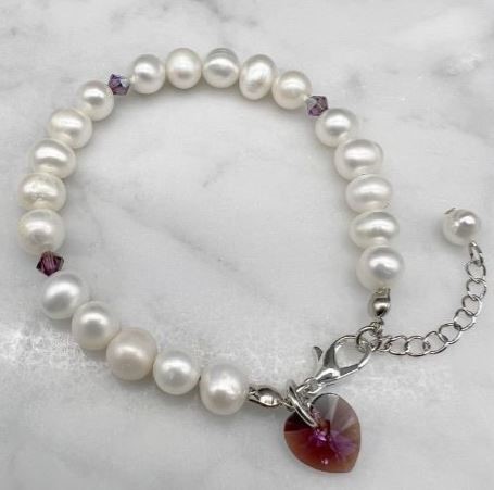 7-8mm Natural Potato & Baroque Freshwater Pearl with Swarovski® Heart Charm Bracelet.