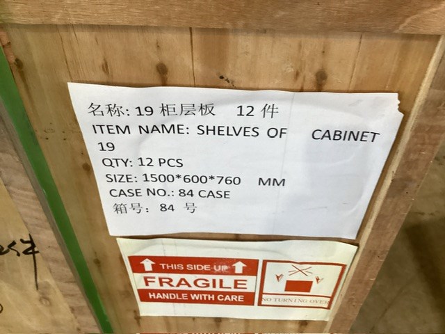 • Shop Cabinet, Qty x 3 cases, color, white, unknown size when put together, deconstructed, 3 x floor cabinets, 12 x shelving, 6 x side panels, floor cabinet per cabinet, Lx 600mm Wx 300mm Hx 1500mm approximately