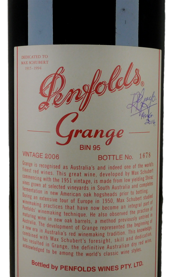 Penfolds Bin 95 Grange 2006 Signed by Peter Gago (1 x 1.5L Magnum)