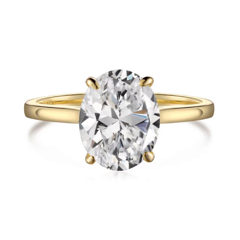 2ct Oval Cut Simulated Diamond 18K Gold Filled 925 Silver Ring - Size 6