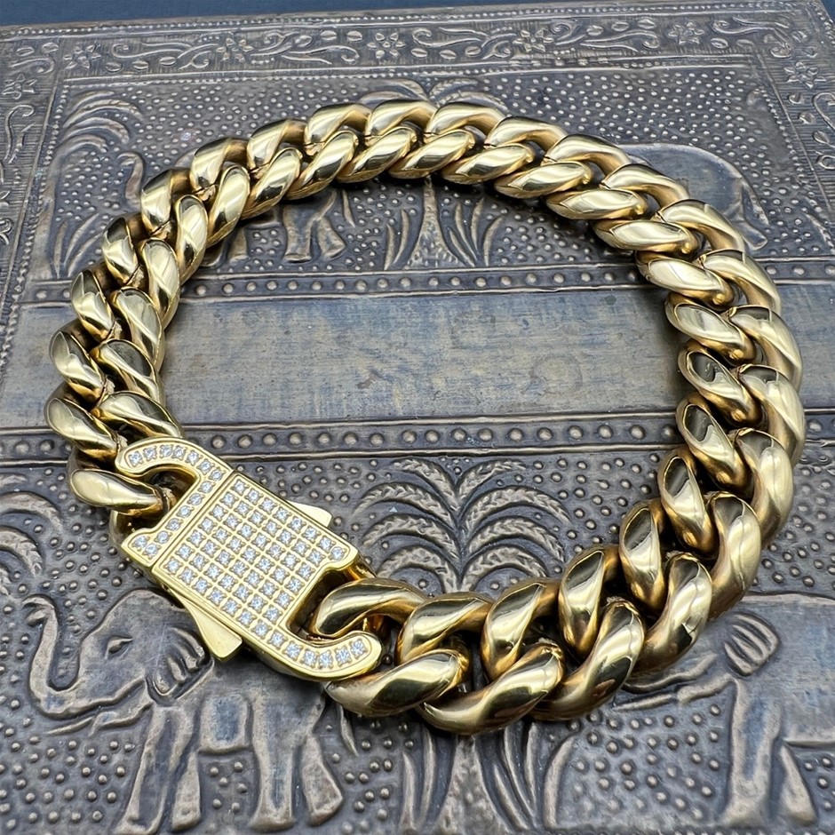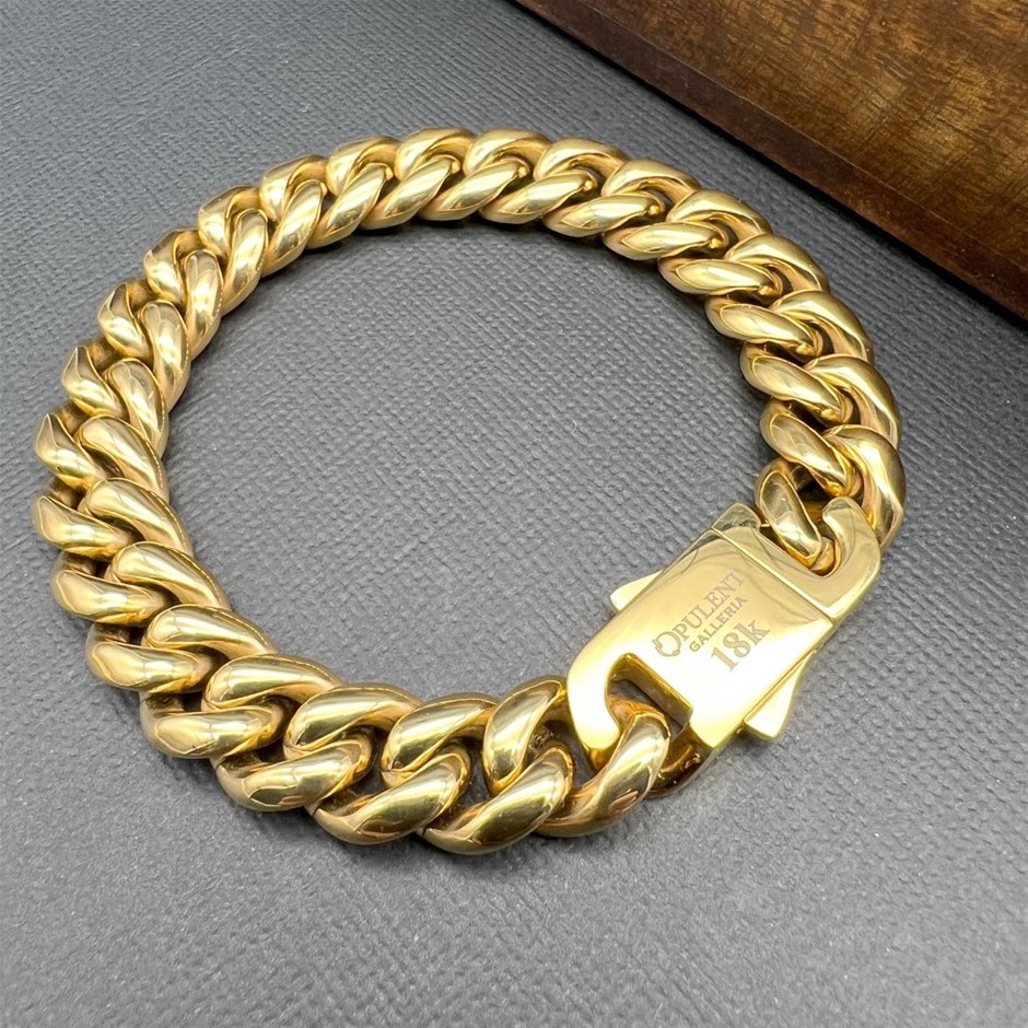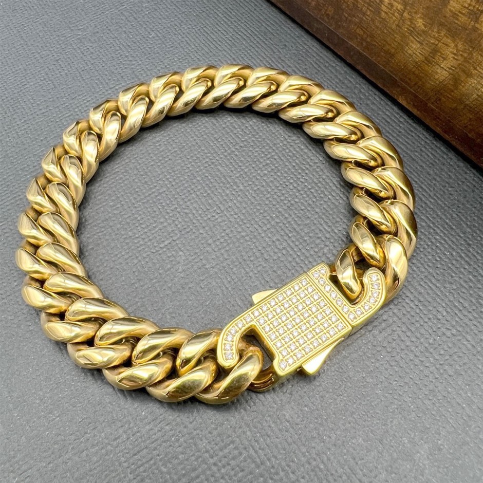 Opulent Galleria - Iced Clasp 18K Gold-Filled Cuban Chain Bracelet, 12MM Wide - 20.3cm