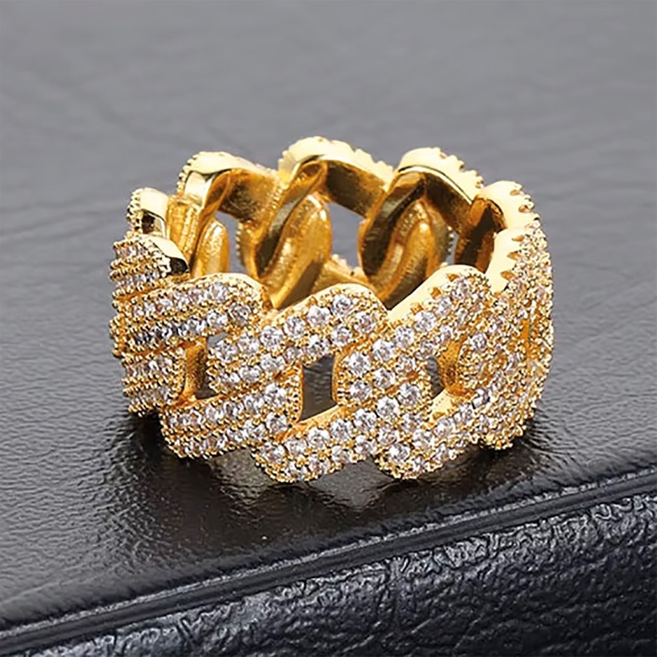 18K Gold-Filled Cuban Iced Out Ring with Simulated Diamonds - Size 10