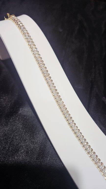 18K/ITALY Yellow Gold Filled Emerald Cut Tennis Bracelet -18cm+3cm Extra