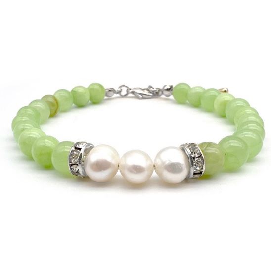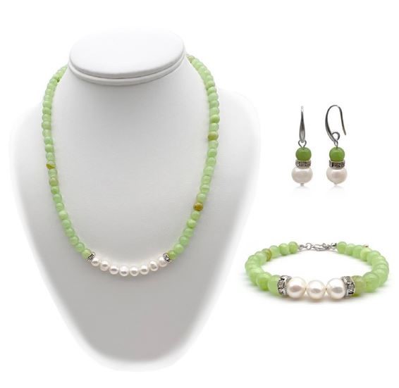10mm Green Flower Jade with `O` Toggle Gemstone Beaded Necklace, Bracelet & Earring Jewellery Set