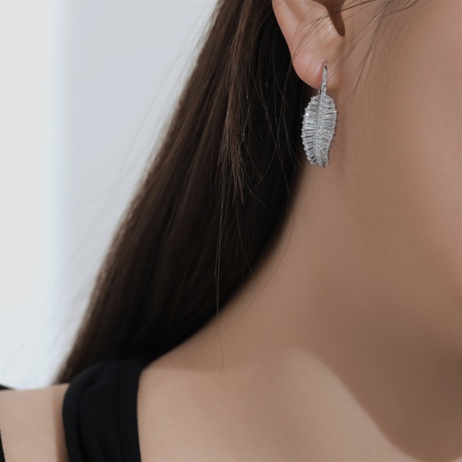 Pear 925 Sterling Silver Simulated Diamonds Leaf Earrings
