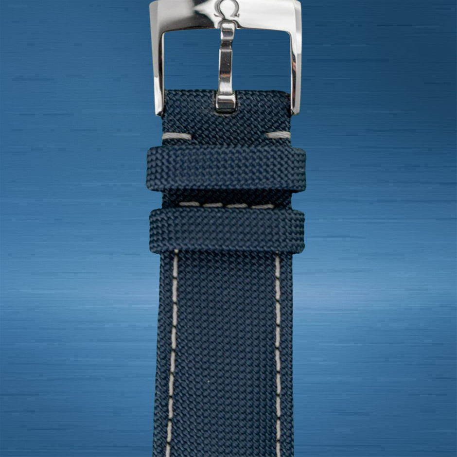 • STRAP: BLUE NYLON FABRIC STRAP WITH PIN BUCKLE