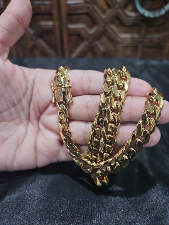 18k Italy Stamped Yellow Gold Filled Cuban Chain-Quality Guarantee-55cm-12mm