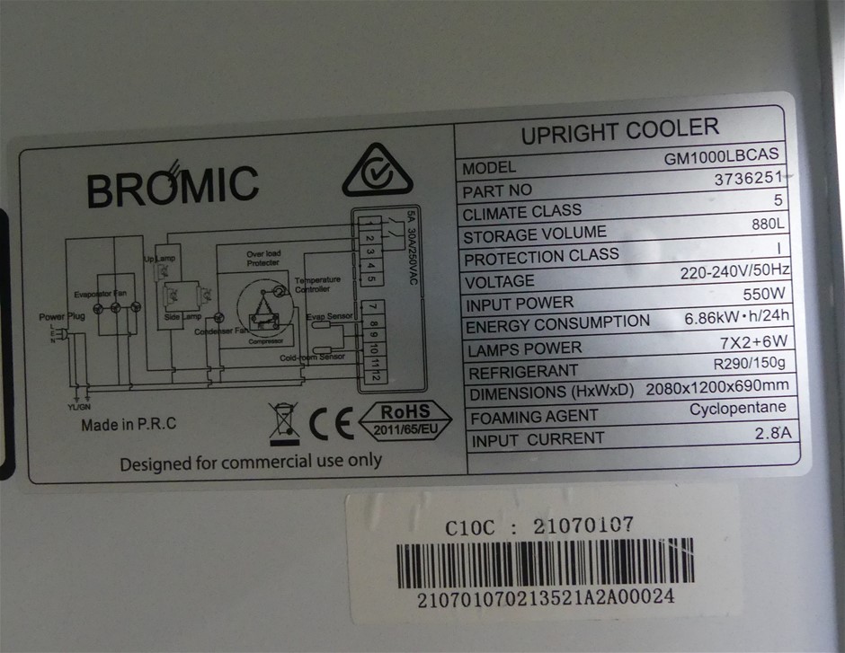 Bromic GM1000LBCAS Self Contained 2 Door Upright Refrigerator