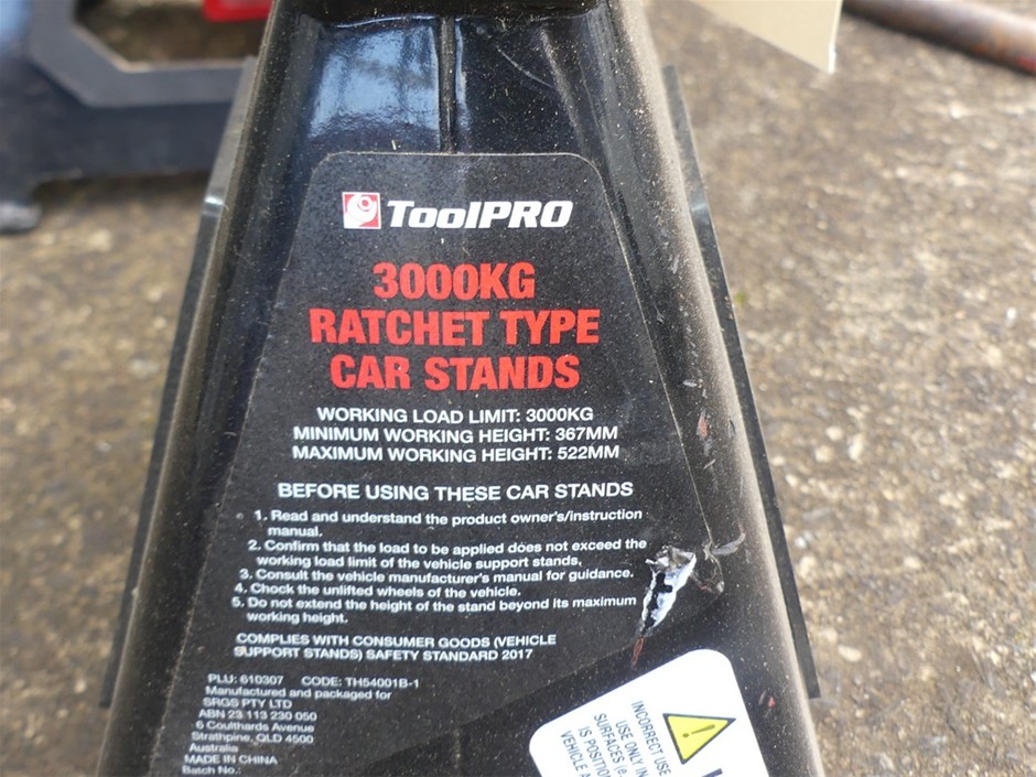 • 2x TOOL PRO, 3000KG RATCHET TYPE CAR STANDS