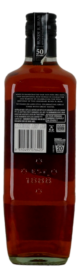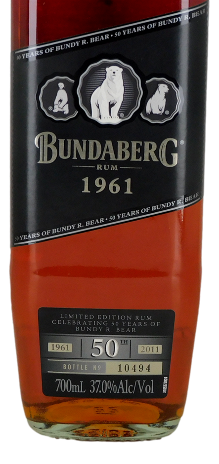 Bundaberg rum has been an integral part of Australia’s heritage since 1888. Released in 2011, this commemorative edition has been matured for 1,961 days for the `birth` of ``Bundy R.Bear`` as the distillery`s mascot in 1961. The bear motif was introduced to imply that Bundy Rum could ward off the coldest chill. It`s since gone on to become an Australian icon. Limited edition.