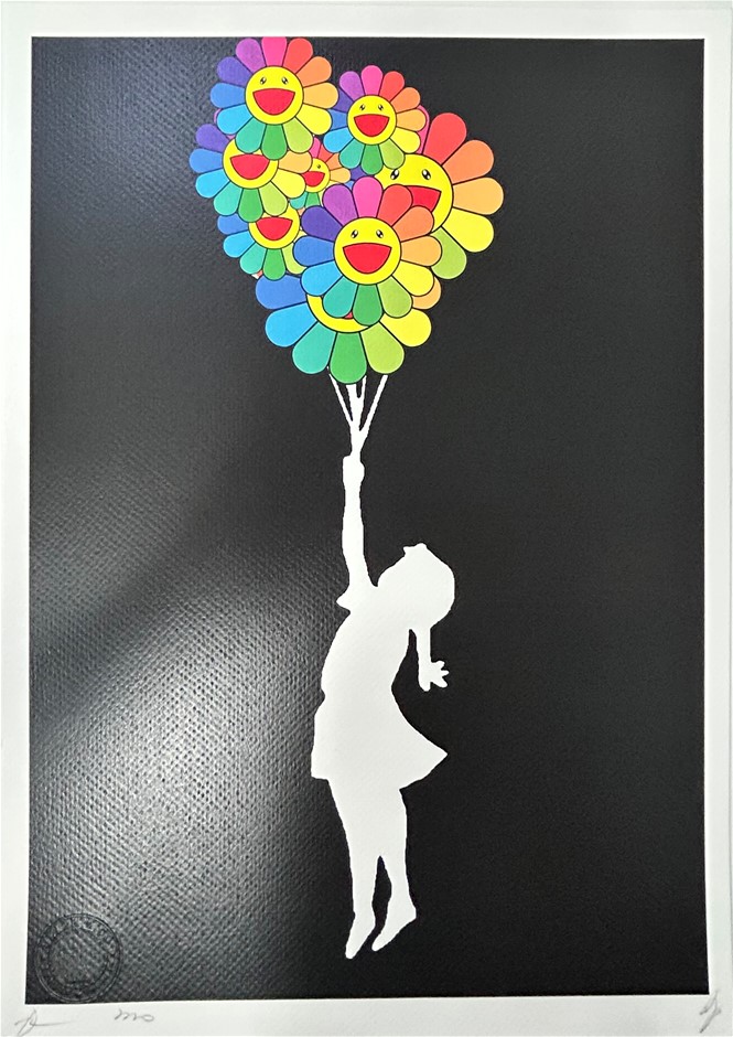 Death NYC Signed Street Art Print Banksy Girl With Murakami Flower Ballons
