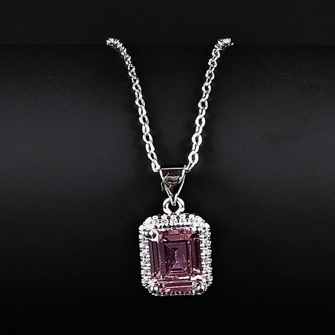Rectangular Pink Pendant Necklace in Silver