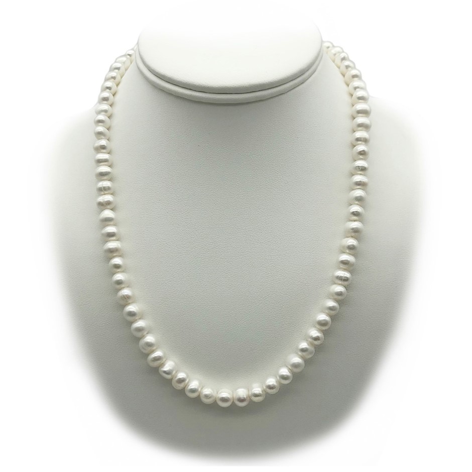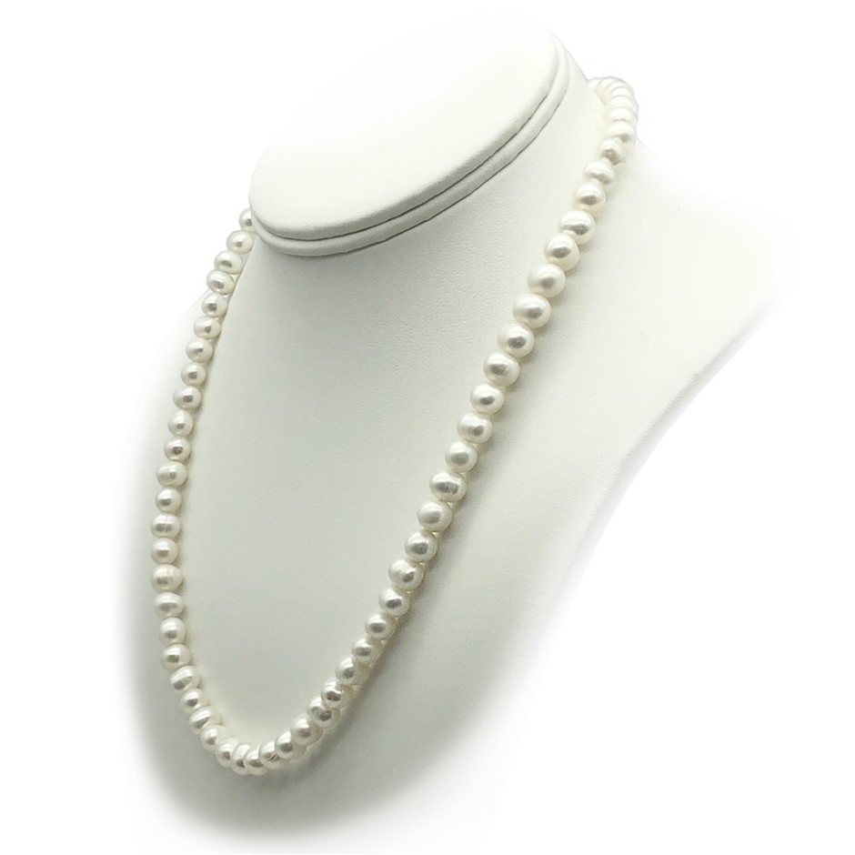 Natural 7-8mm Potato Shape Freshwater Pearl with Real Platinum Plated Necklace.