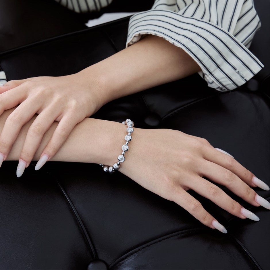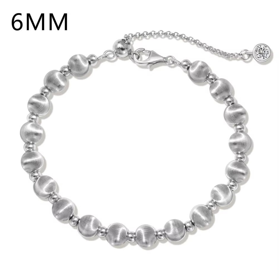 6mm 925 Sterling Silver Simulated Diamond & Beads Bracelet