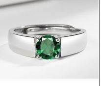 1.0ct Green stones 925 Sterling Silver Ring (s925)-Adjustable