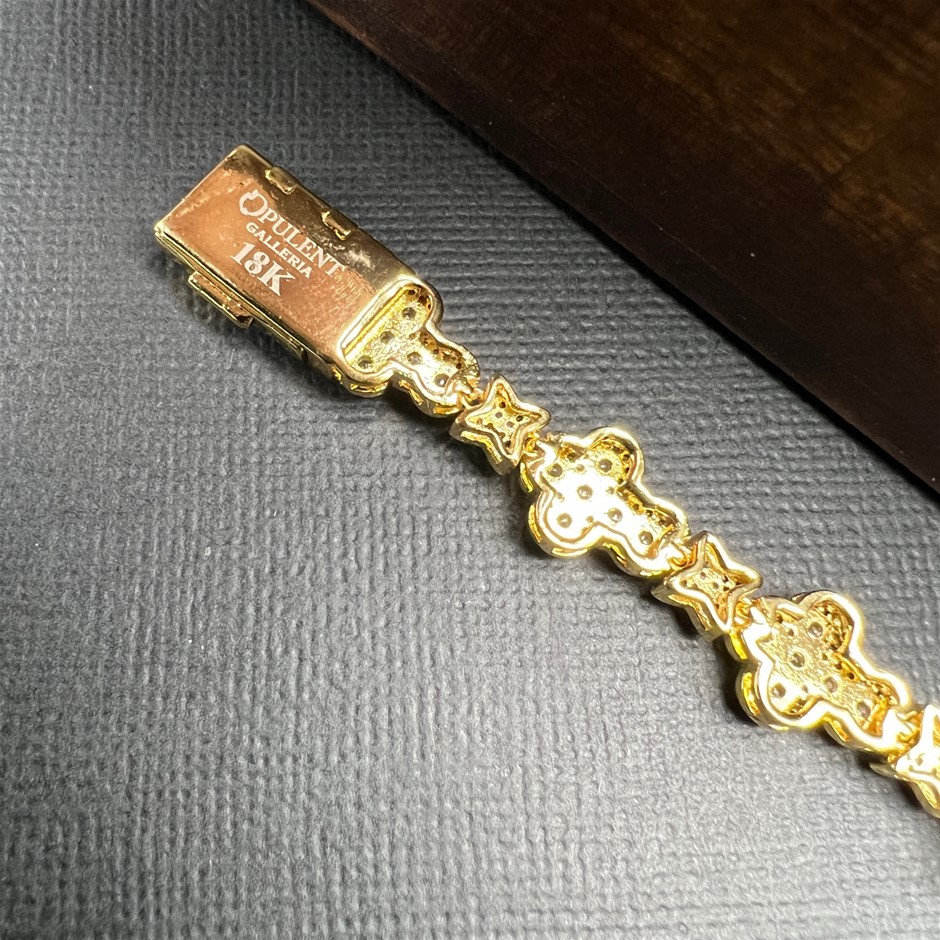 Opulent Galleria - 18K Gold-Filled Cross & Flower Bracelet with Simulated Diamonds - 17.8cm