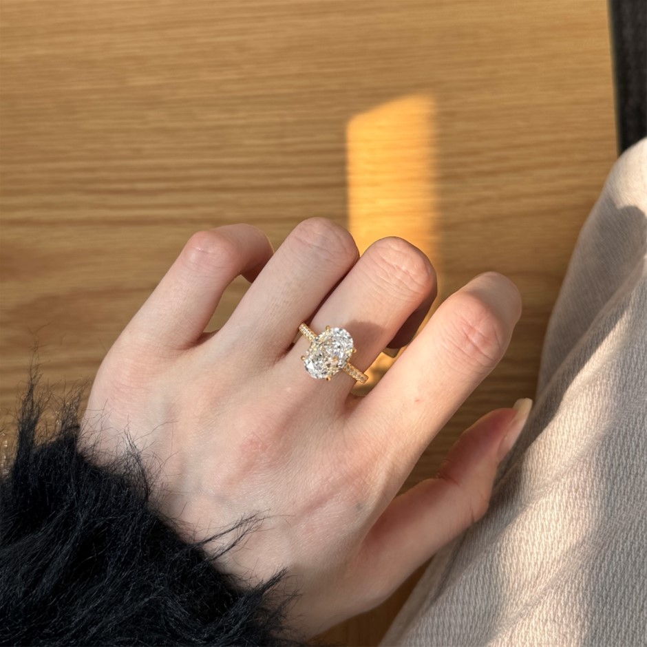 4.0ct Oval Cut Simulated Diamond 18K Gold Filled 925 Silver Ring - Size 5