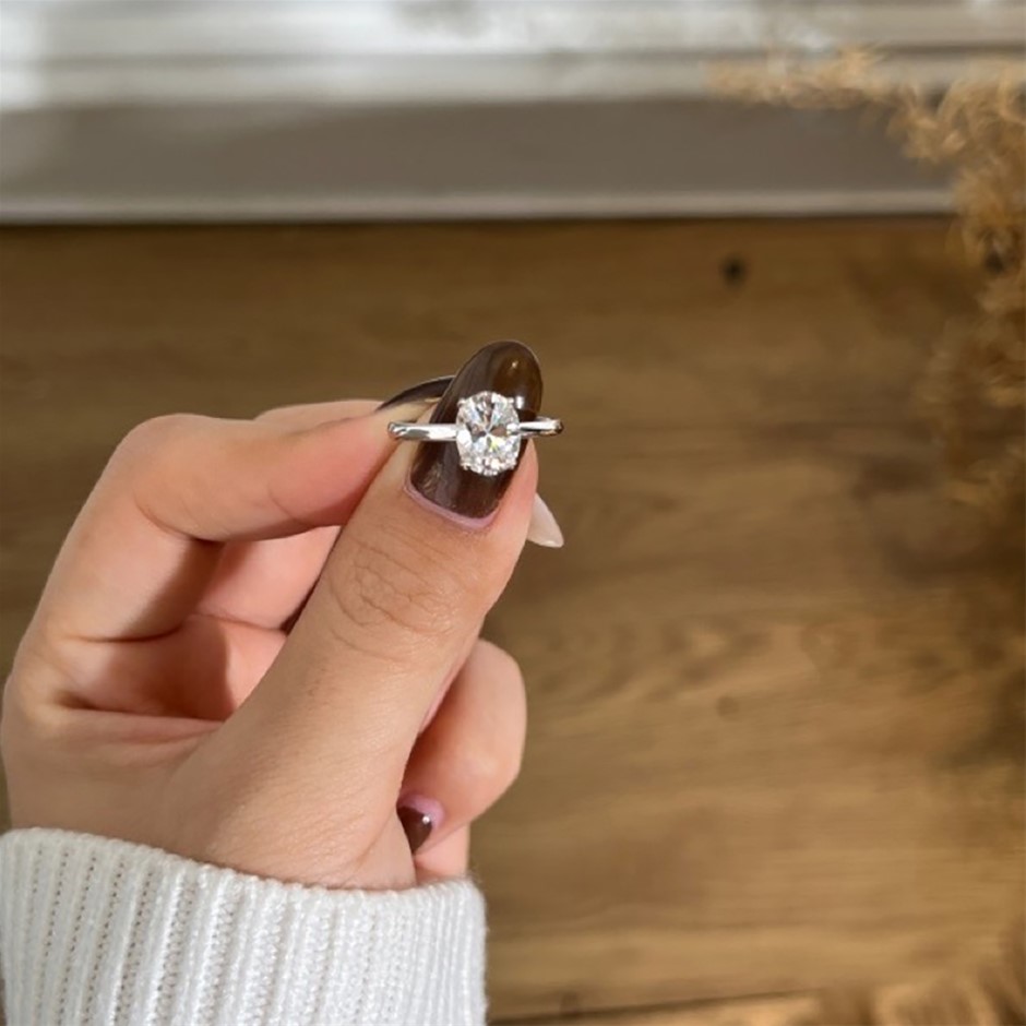 2.00ct Oval Cut GRA Certified Moissanite 925 Sterling Silver Ring - Size 5