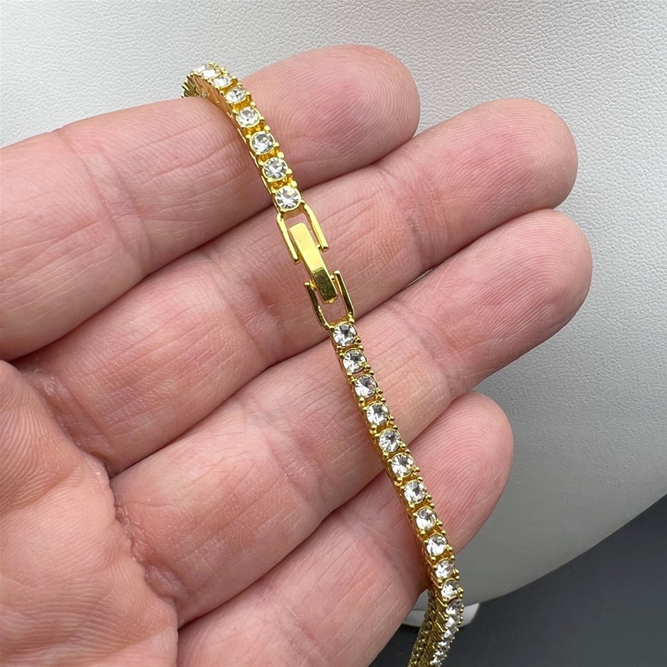 18K Gold-Filled 3mm Necklace with Simulated Diamonds - 45.8cm