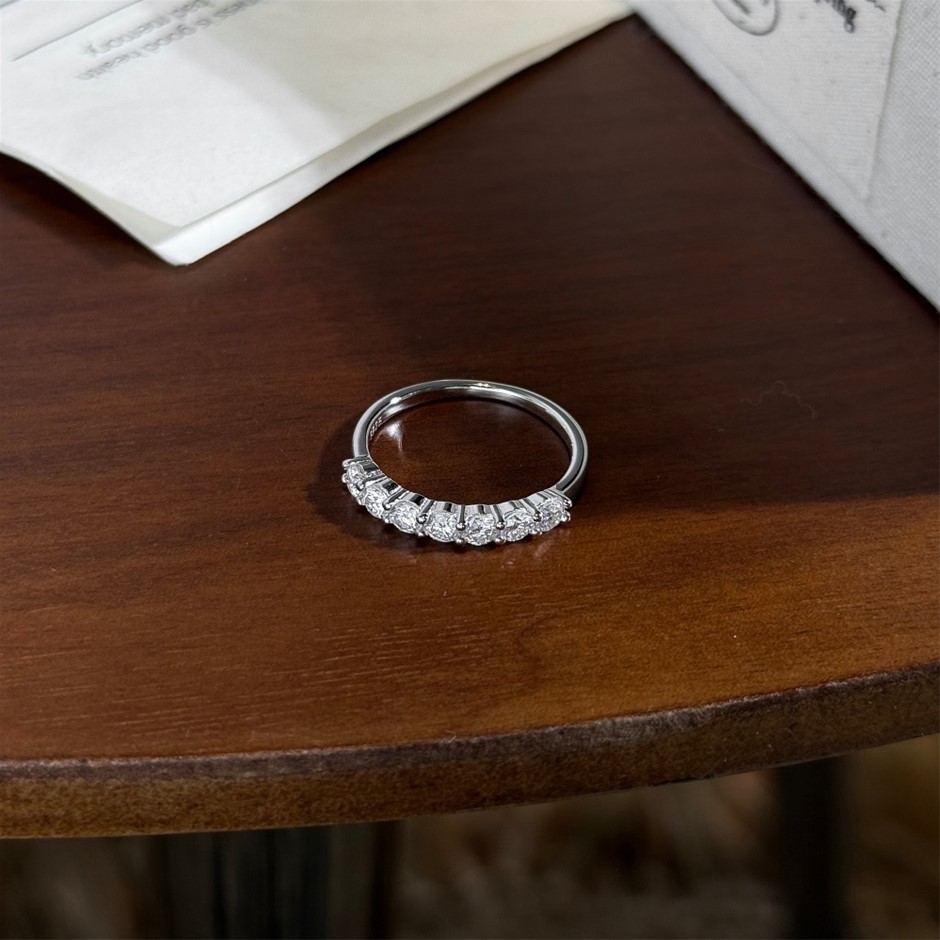 0.70ct GRA Certified Moissanite 925 Silver Swirl Band Ring - Size 5