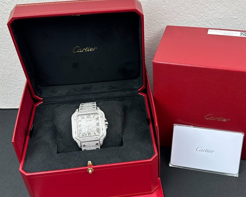 CARTIER Santos de Cartier - Large 38.8mm CUSTOM DIAMOND WSSA0037 BxP & COA