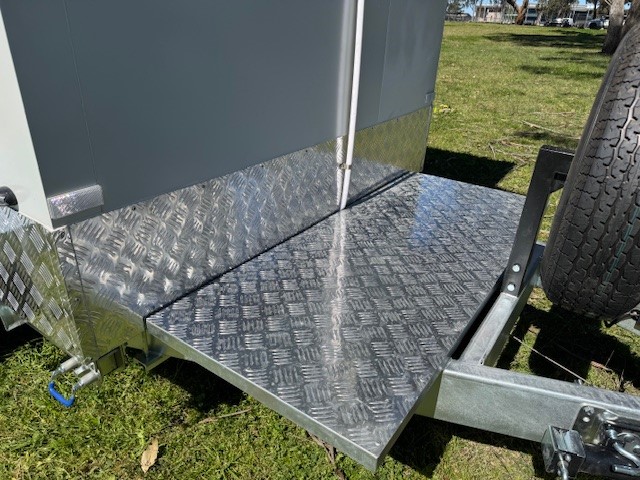 Cool Room Trailer delivers spacious, reliable, and efficient mobile refrigeration for commercial and event use. With a 2.8m insulated cool room body and 100mm thick premium panels, it ensures maximum cooling efficiency. Powered by a TECUMSEH 1.0P system (–20°C to +10°C), it maintains consistent temperature control. Built tough with a hot-dipped galvanized chassis and aluminium checker plate finish, it features electric brakes, 15-inch tyres (plus spare), dropdown support legs, and a full lighting package. Safety is enhanced with an emergency release exit, fitted bell, and waterproof 15 amp inlet. Additional conveniences include a drain plug, internal door flaps, and wide 900x1700mm door access—making it a dependable choice for catering, events, and professional use.