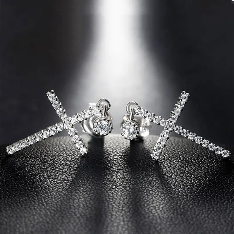 This Earrings is made from an Elegant 18K White Gold plated cross CZ Earrings.