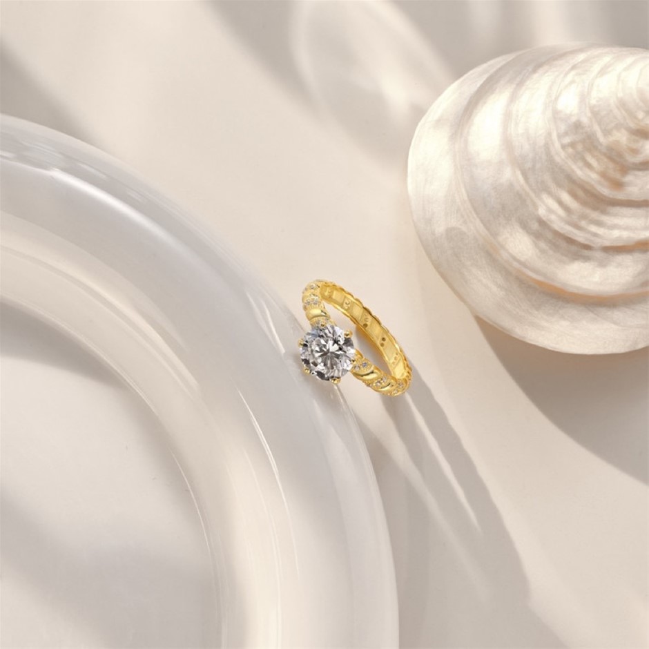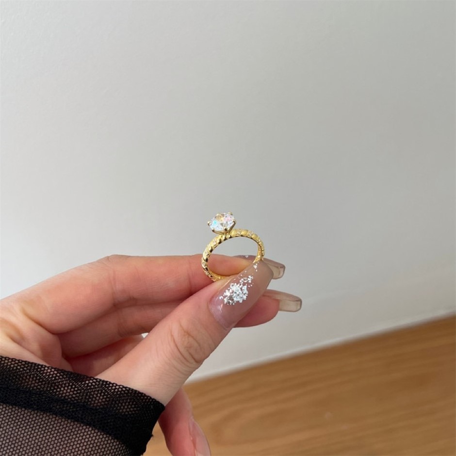 Round Cut Simulated Diamond 18K Gold Filled 925 Silver Ring - Size 7