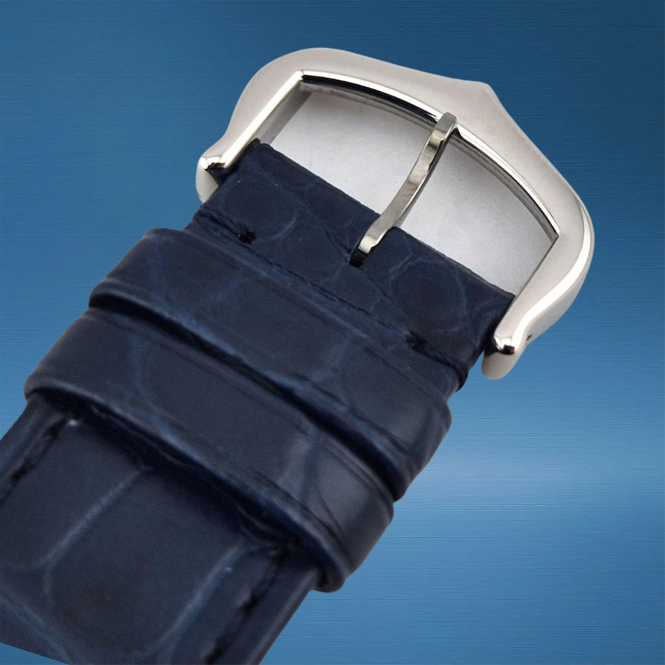 • Bracelet / Strap: Blue leather strap with stainless steel buckle