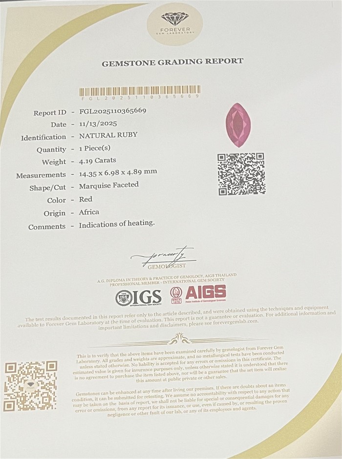 4.19 carat red certified ruby