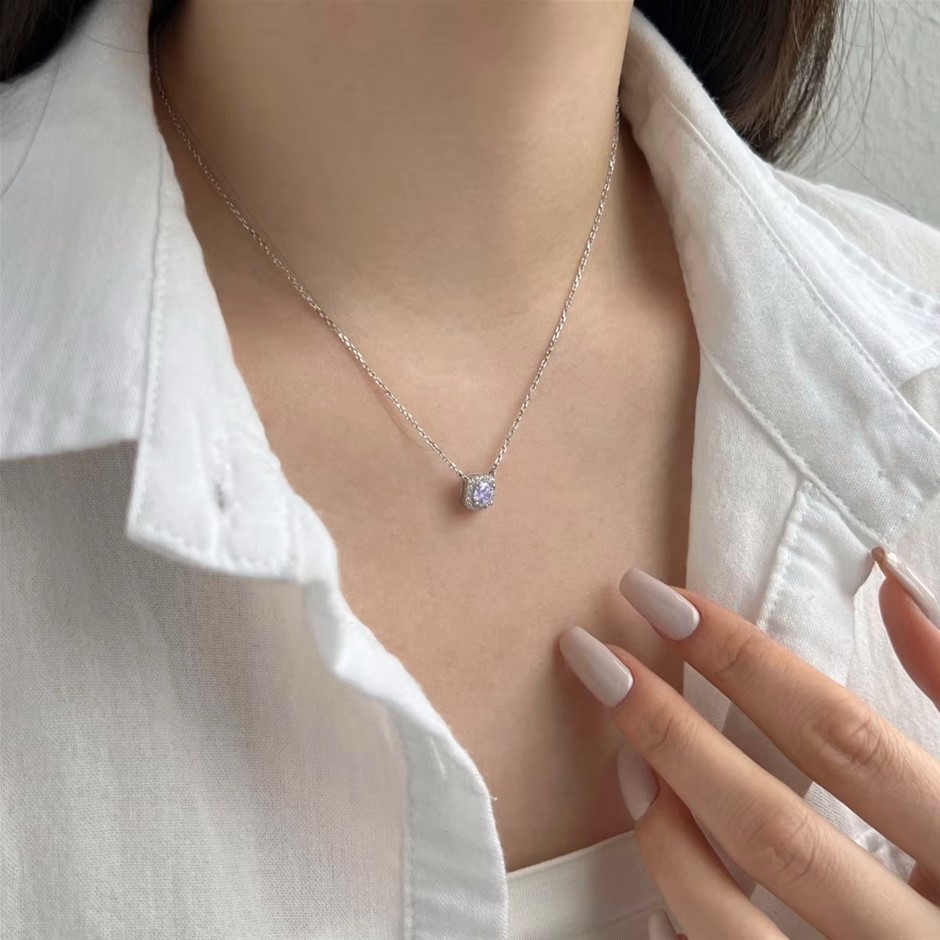 0.5ct 925 Silver Simulated Diamonds Round Pendant Necklace