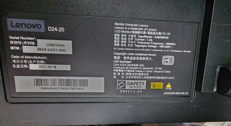 • Lenovo D24-20 - 23.8inch Full HD 1920 x 1080 Monitor