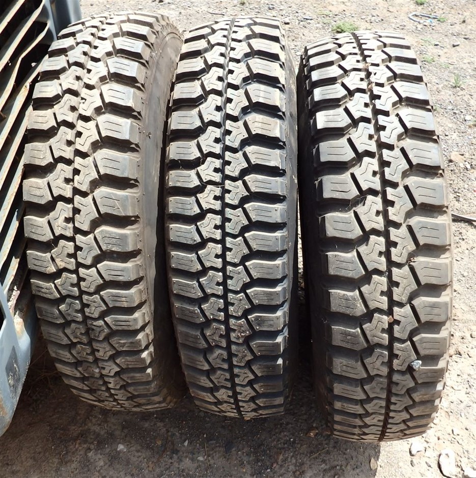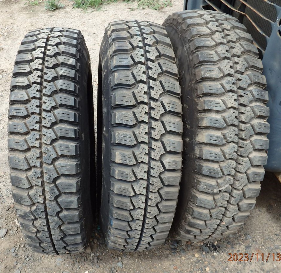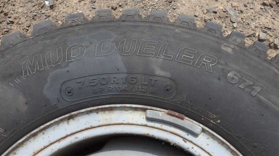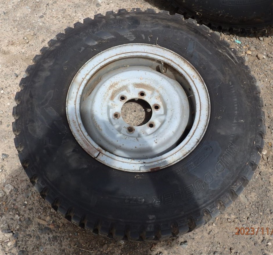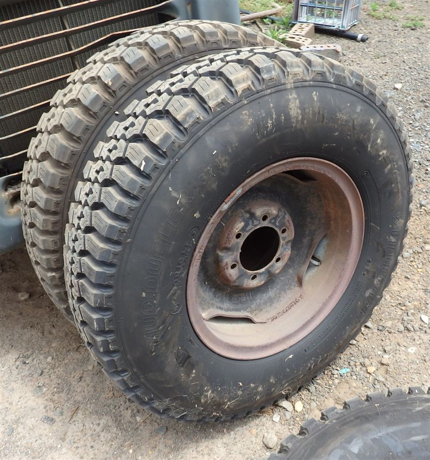 • steel belted radial tyres fitted to 6 stud Toyota Landcruiser wheels,(may suit other 4 wheel drives)