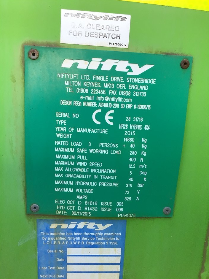 • 2015 Nifty HR28 HYDRID Knuckle Boom Lift